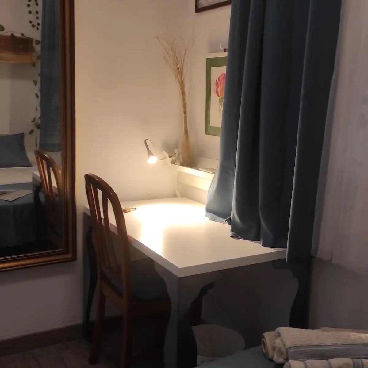 Private Interior Room for Seasonal Rental – A functional and quiet residential space tailored for professionals and students. This unit provides an optimized environment for remote work with high-speed connectivity and a dedicated desk.