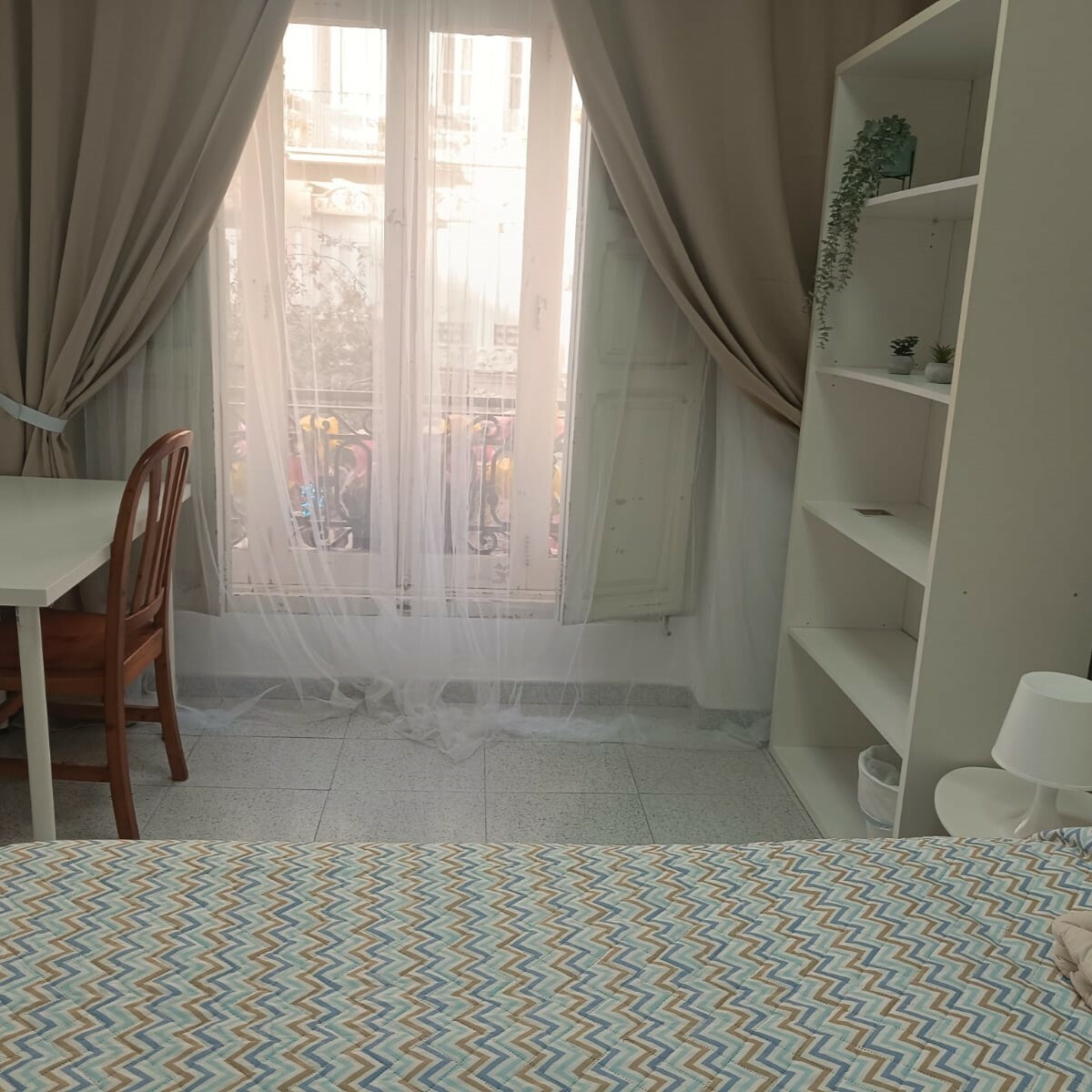 Located in a quiet, historic residential building in the central El Ensanche district. The room is exterior and includes a private balcony. Tenants have access to shared residential areas for co-living.